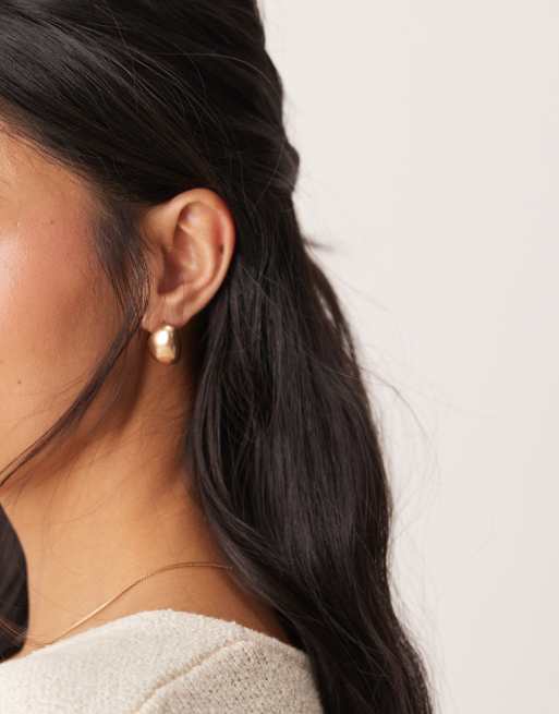 ASOS DESIGN stud earrings with mini dome stud in brushed gold tone