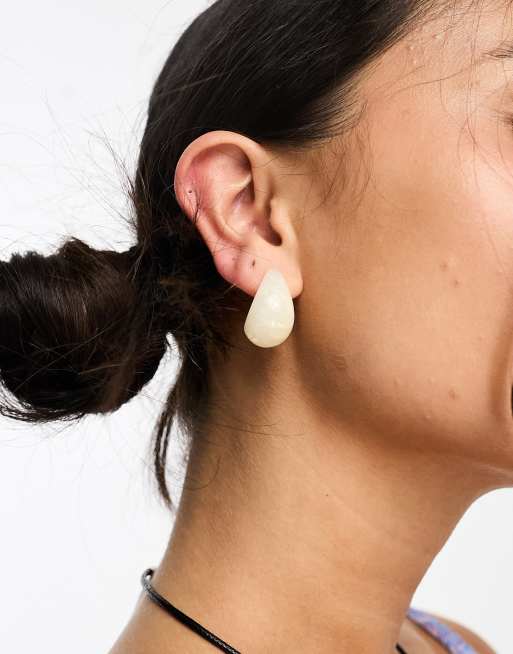 ASOS DESIGN stud earrings with resin teardrop design in white