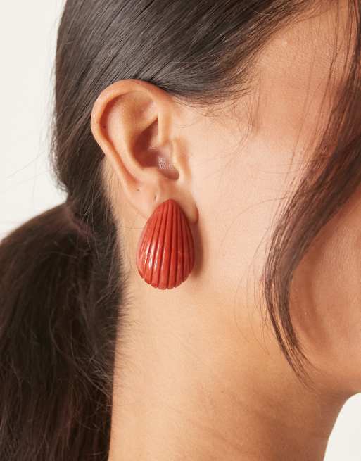 ASOS DESIGN stud earrings with ridged teardrop shape in mulberrry