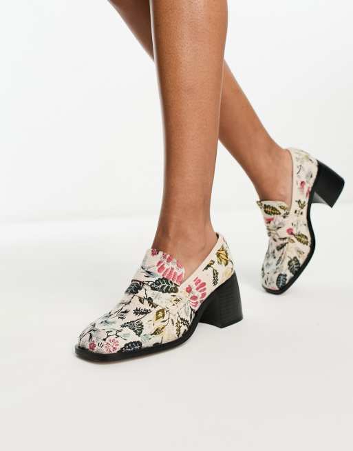 ASOS DESIGN Substitute smart mid heeled loafers in tapestry