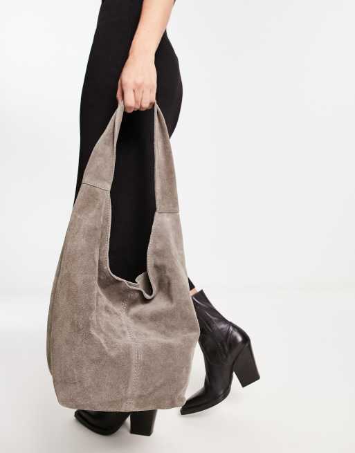 ASOS DESIGN suede tote bag with tie detail in grey