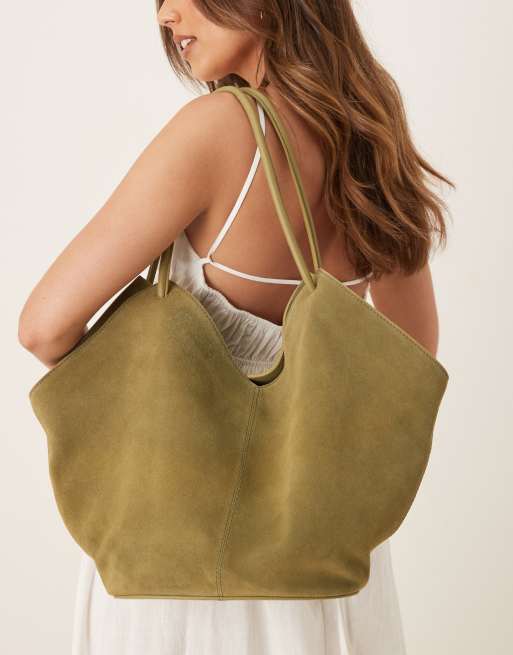 ASOS DESIGN suede tubular handle vase tote bag in olive