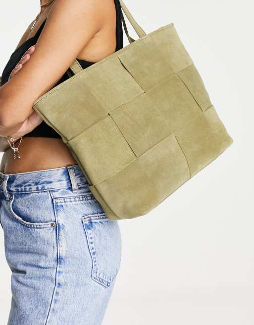 ASOS DESIGN suede weave tote in khaki