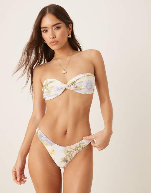 ASOS DESIGN Sunny tropical print Florida high leg bikini bottom in yellow
