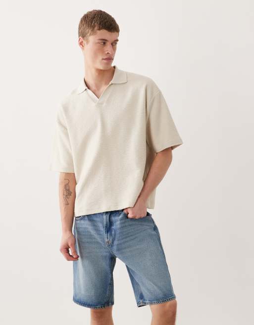 ASOS DESIGN super heavyweight boxy oversized polo in beige texture