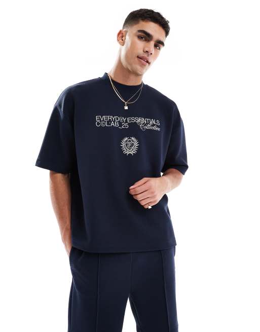 ASOS DESIGN super heavyweight super heavyweight boxy oversized t-shirt with text embroidery in navy texture