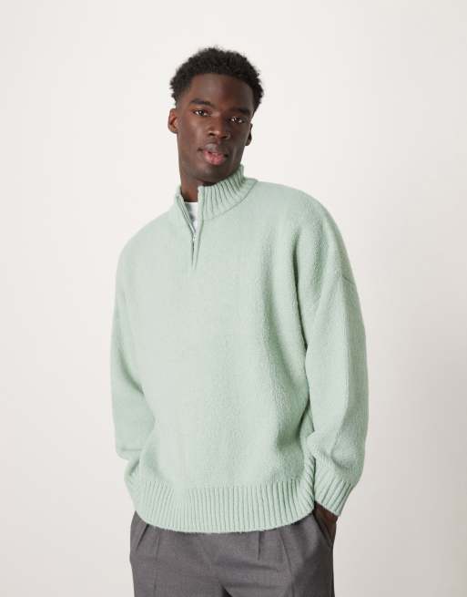 ASOS DESIGN super oversized boxy fit brushed knitted quarter zip jumper in sage green