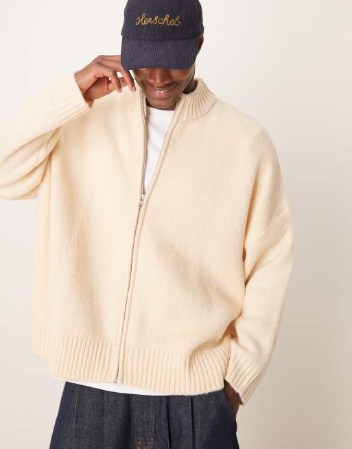 ASOS DESIGN super oversized boxy fit brushed knitted zip through cardigan in oatmeal