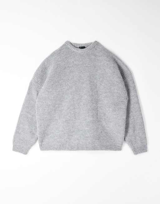 ASOS DESIGN super oversized boxy fit knitted fisherman rib jumper in grey