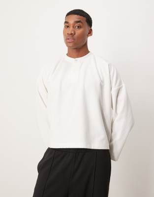ASOS DESIGN super oversized cropped heavyweight rib henley jumper in cream