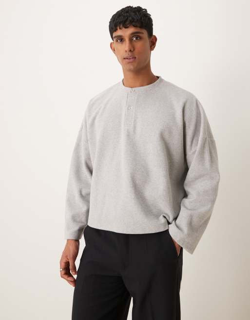 ASOS DESIGN super oversized cropped heavyweight rib henley jumper in grey marl
