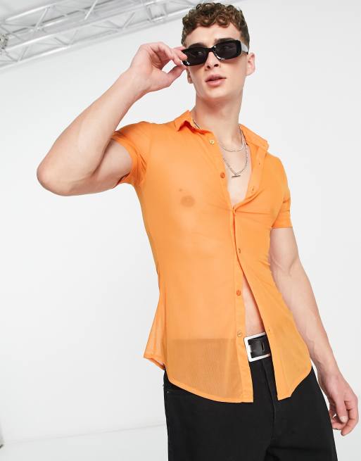 ASOS DESIGN super skinny mesh shirt in bright orange