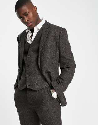 ASOS DESIGN super skinny suit jacket in check wool mix in khaki