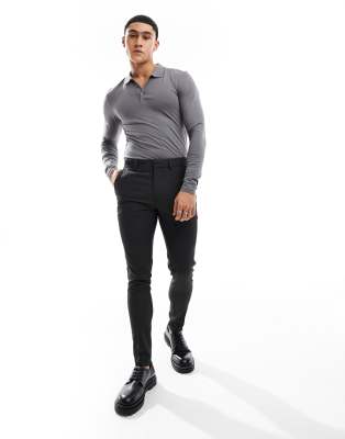 ASOS DESIGN super skinny suit trouser in black pindot