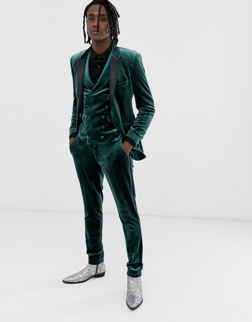ASOS DESIGN super skinny tuxedo in forest green velvet
