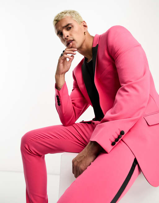 ASOS DESIGN super skinny tuxedo suit jacket in hot pink
