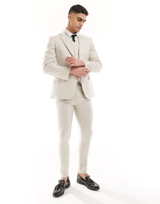 ASOS DESIGN super skinny with linen suit in stone