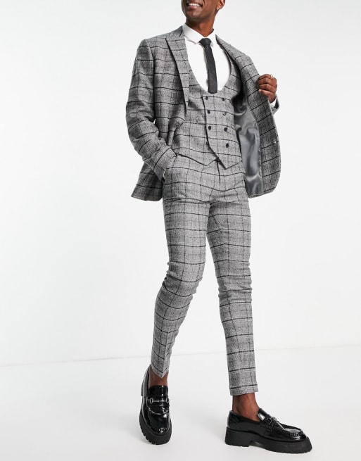 ASOS DESIGN super skinny wool mix suit in grey and white highlight check
