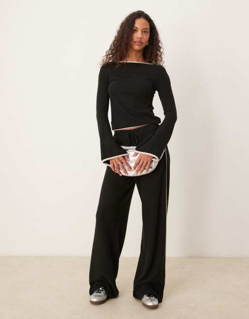 ASOS DESIGN super soft angel sleeve top and trouser co ord with tipping in black