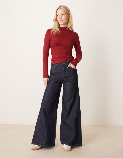ASOS DESIGN super wide leg jean with twisted seam in indigo