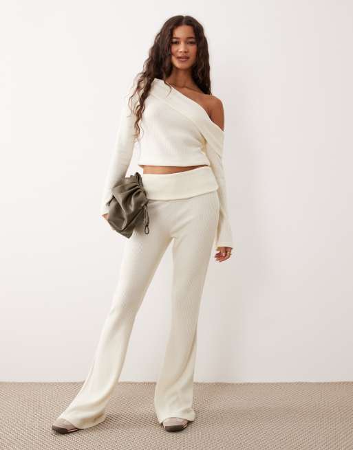 ASOS DESIGN Supersoft brushed rib wide leg trouser co-ord in white - WHITE