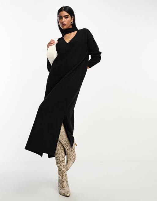 ASOS DESIGN supersoft choker detail long sleeve midi jumper dress in black
