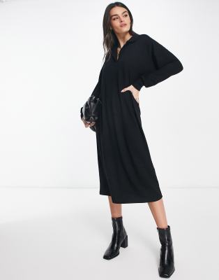 ASOS DESIGN supersoft long sleeve polo midi jumper dress in black