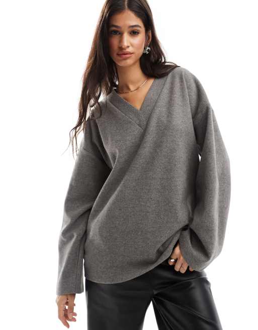 ASOS DESIGN supersoft oversized V neck jumper in charcoal