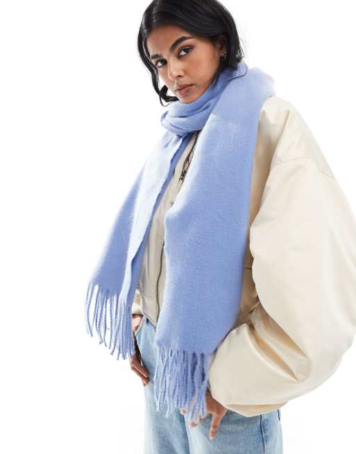 ASOS DESIGN supersoft scarf with tassels in mid blue
