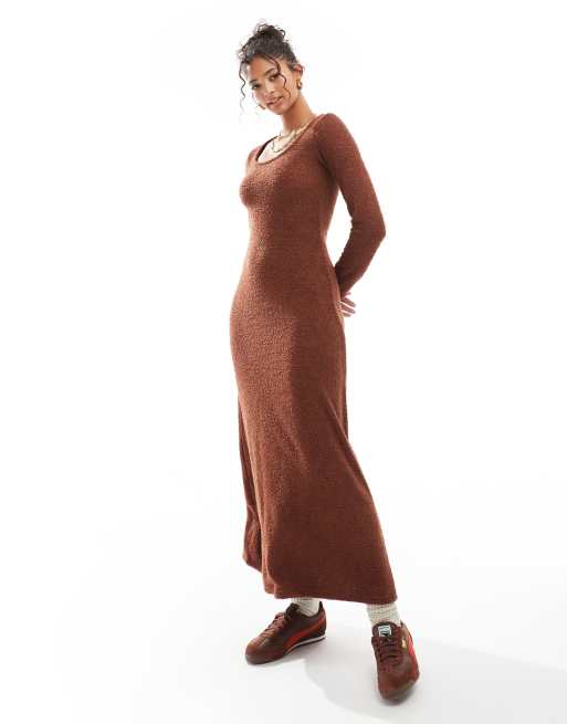 ASOS DESIGN supersoft scoop neck fit and flare midi dress in chocolate