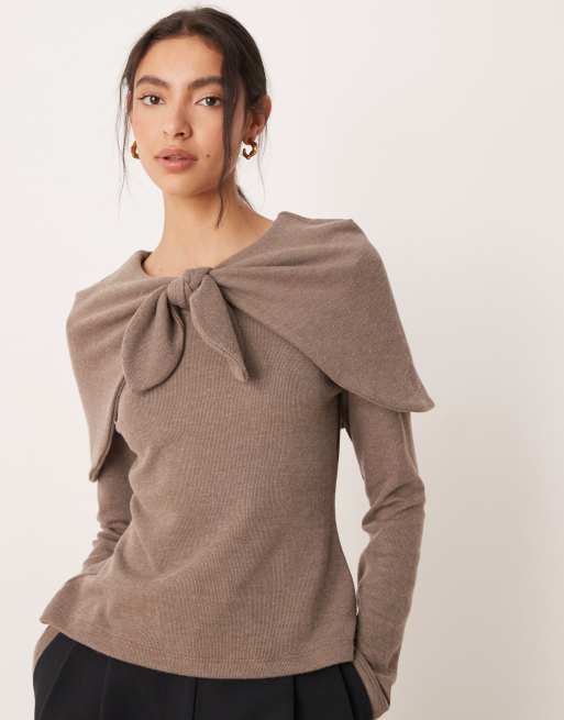 ASOS DESIGN Supersoft shoulder tie detail jumper in mocha