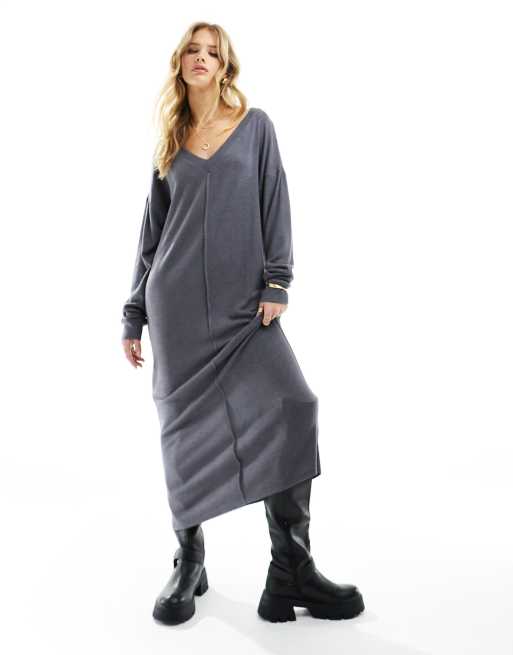 ASOS DESIGN supersoft v neck maxi with seam detail in charcoal