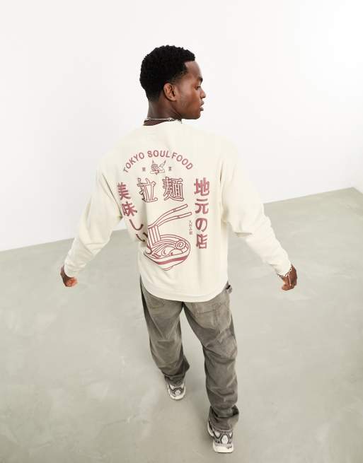 ASOS DESIGN sweatshirt in beige with cartoon back puff print