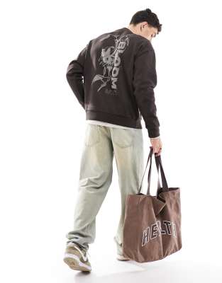ASOS DESIGN sweatshirt with floral spine print in brown