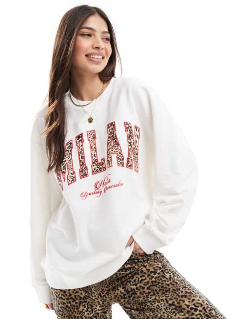 ASOS DESIGN sweatshirt with milan graphic in leopard in cream