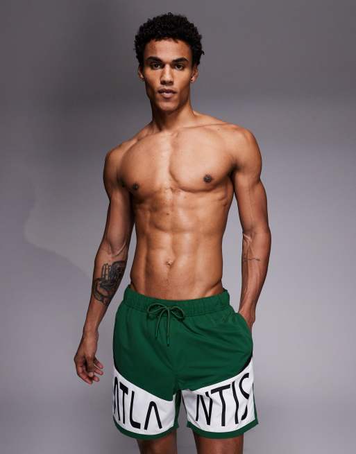 ASOS DESIGN swim shorts in mid length with placement print in green