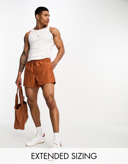 ASOS DESIGN swim shorts in short length in brown
