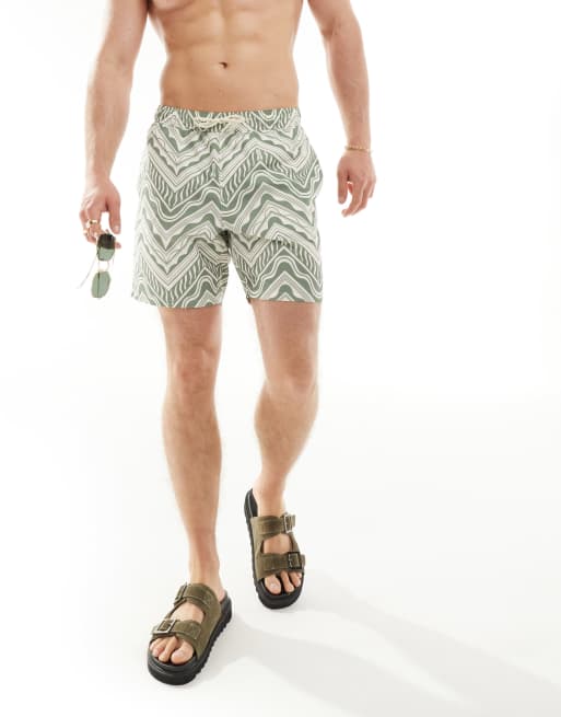 ASOS DESIGN swim shorts in short length in green geo print