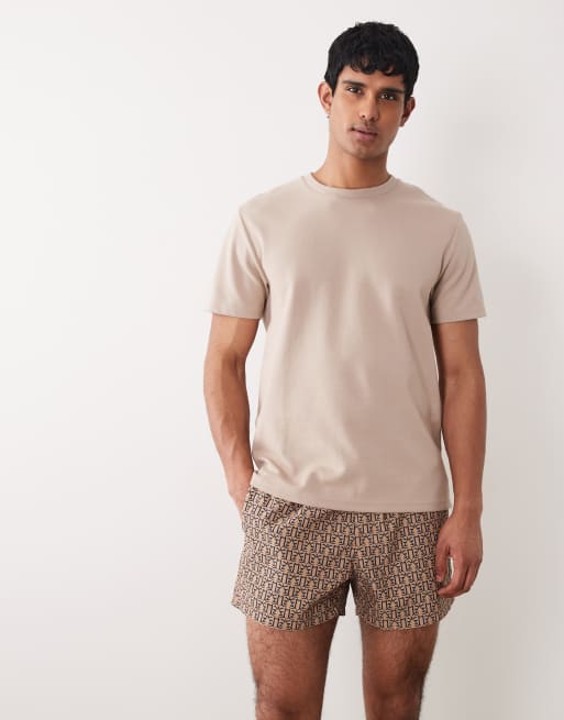 ASOS DESIGN swim shorts in short length in micro print in brown