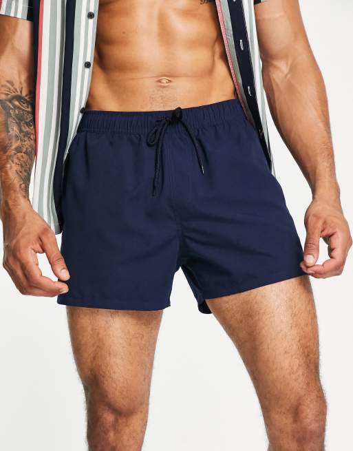 ASOS DESIGN swim shorts in short length in navy