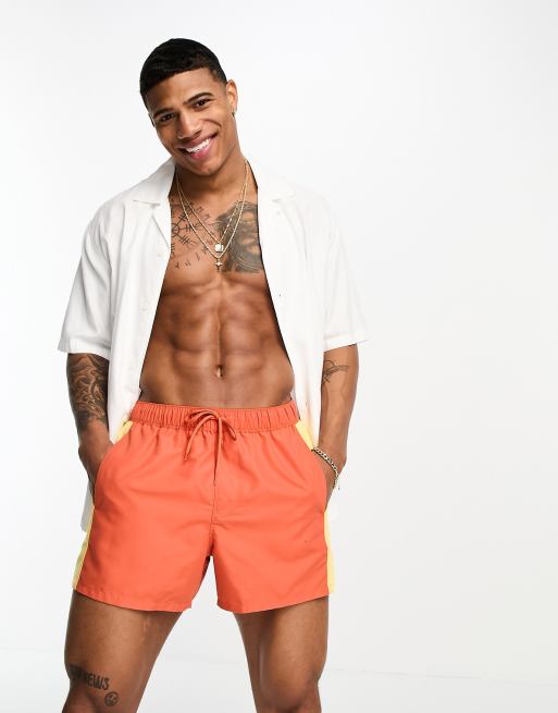 ASOS DESIGN swim shorts in short length in orange