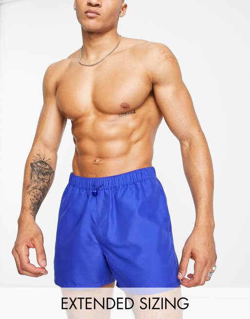 ASOS DESIGN swim shorts in short length with toggle in bright blue