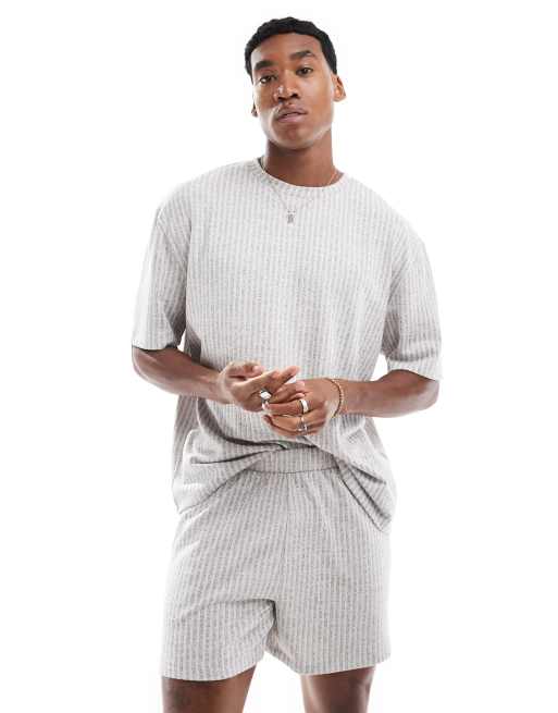 ASOS DESIGN t-shirt and shorts lounge set in grey stripe