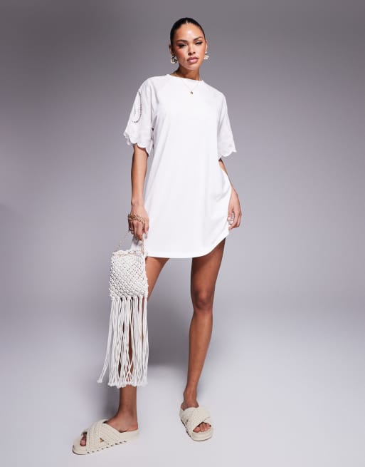 ASOS DESIGN T-shirt crochet lace sleeve mini dress in white