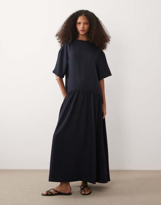 ASOS DESIGN t-shirt drop waist midi dress in navy