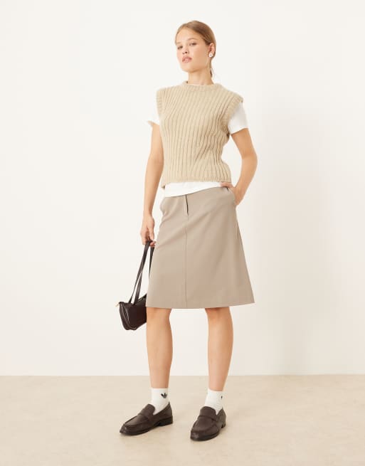 ASOS DESIGN tailored 90's length midi skirt in mocha