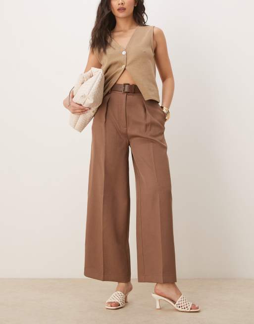 ASOS DESIGN tailored ankle grazer trousers with PU belt in mocha