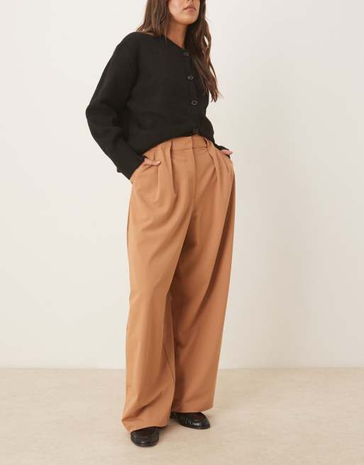 ASOS DESIGN tailored barrel leg trouser in camel
