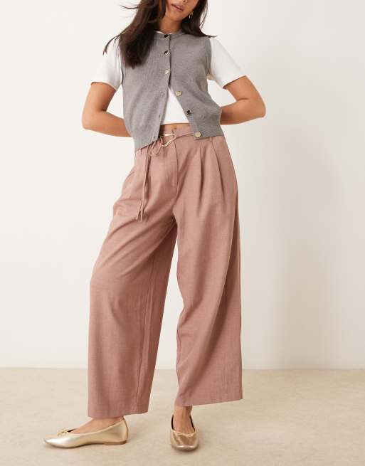 ASOS DESIGN tailored barrel leg trouser with double ties in mink