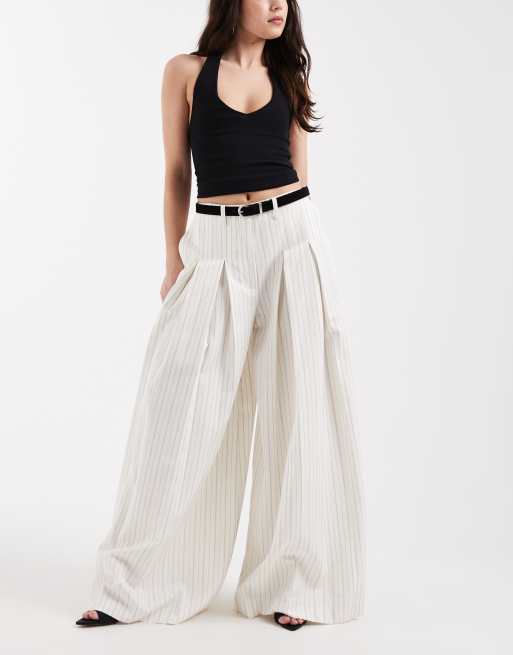 ASOS DESIGN tailored belted palazzo trousers with linen in ecru stripe